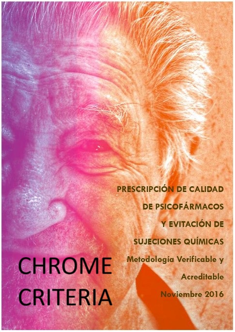 Los criterios CHROME (Chemical Restraints Avoidance Methodology) han sido elaborados por un panel de expertos con el objetivo de reducir las sujeciones químicas en las personas con demencia que viven en residencias y de promover una prescripción de psicofármacos de calidad, dentro de un marco legal. En este sentido podemos felicitar a este sello de calidad que garantiza un espacio libre de sujeciones químicas. Además de velar para que los residentes de un centro geriátrico puedan estar más liberados del abuso de sustancias psicotrópicas, en el peor de los casos podemos decir que también se preocupan para que estas personas puedan disponer de los mejores fármacos del mercado, para que se puedan aliviar los sufrimientos derivados de la demencia y tener una mejora notable de su calidad de vida. Aunque la pregunta central que le formulamos a este equipo profesional después de hacer un desarrollo que podría resultarle al lector algo muy instructivo es: ¿Por qué razón no existe ninguna comisión formal de expertos médicos que de la misma manera pueda oponerse a la sujeción química que soporta el colectivo de personas con problemas psiquiátricos apoyándose en los mismos criterios de esta misma iniciativa CHROME que en este caso se centra en la calidad de vida y bienestar de las personas de la tercera edad?
