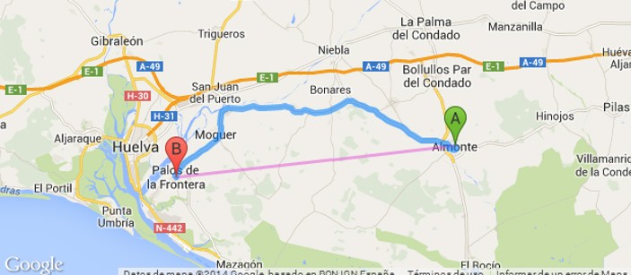 Les habla una persona que vive cerca del lugar donde vivió Fray José de Aragón, que fue el guía espiritual de B.S.P, pues además de que sabemos que fue un hombre español del siglo XIV-XV, también se conoce que vivió en el Convento de la Rábida, que se encuentra en Palos de la Frontera (lugar de partida de Cristóbal Colón a la Américas), que como podemos comprobar en la web de distancias entre ciudades, en línea recta dista una distancia de 33,58 Km y a su vez 42 Km por carretera hasta Almonte (Huelva).
